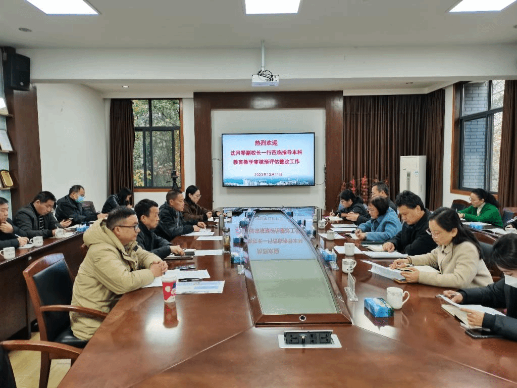 12月11日上午,副校长沈月琴、教务处长郭建忠、教学质量监控与评估中心主任尹国俊、校督导杨丽霞、教学质量监控与评估中心工作人员等一行六人莅临永利集团官网指导本科教育教学审核评估整改工作。永利集团官网党政领导班子、各学科专业负责人、专业负责人、本科实验教学中心负责人、学生办主任以及学院办公室相关工作人员参加了本次工作会议。